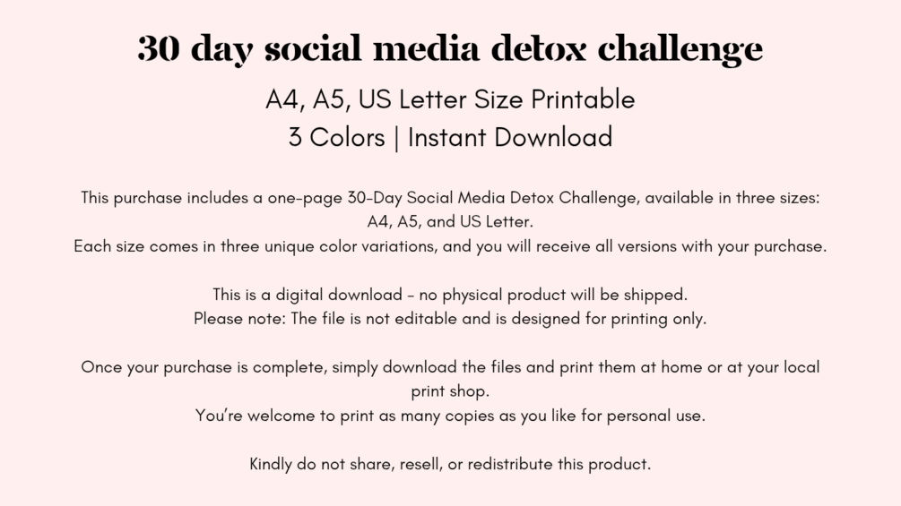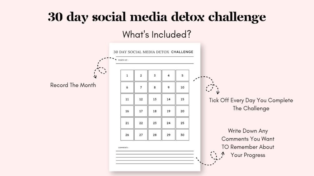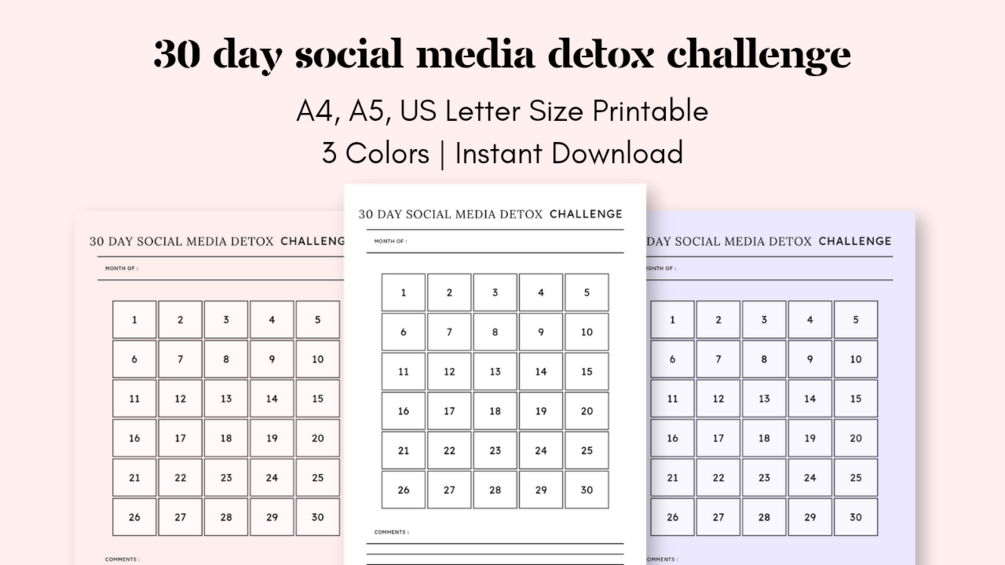 30 Day Social Media Detox Challenge Printable, 30 Day Challenge, Social Media Tracker, Habit Tracker, Goal Planner, Instant Download PDF
